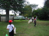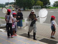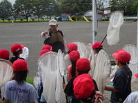 1・2年生は、虫博士から捕虫網の使い方を教えてもらったり、捕まえた虫の名前を教えてもらったりしていました。
