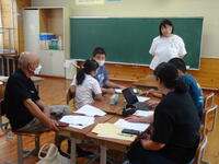各行政区ごとに、児童・PTA地区理事・行政区長・老人会長が集まり、集会で実施する内容や準備物、役割分担などを決めました。