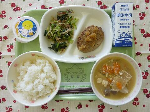 今日の塩谷町産の食材は「米、大豆、にんじん、白菜」、栃木県産の食材は「牛乳、豚肉、大豆(油揚げ)、ごぼう、大根」です。今日は12品目中9品目が塩谷町産・栃木県産でした。(調味料を除く)