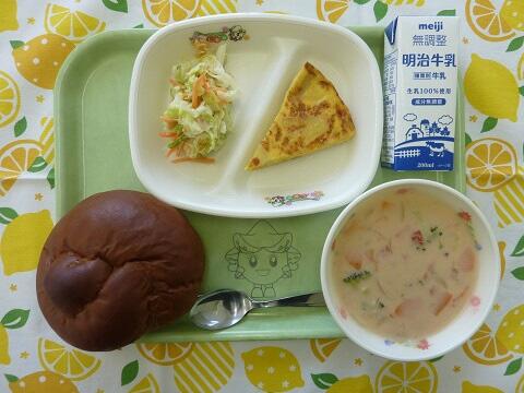 今日の塩谷町産の食材は「大豆、にんじん」、栃木県産の食材は「牛乳、豚肉、ヨーグルト、きゅうり、米粉(米粉パン)」です。今日は12品目中7品目が塩谷町産・栃木県産でした。(調味料を除く)
