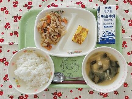 今日の塩谷町産の食材は「米、豆腐、みそ」、栃木県産の食材は「牛乳、ごぼう、かんぴょう」です。