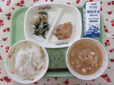 明日はたまねぎのみそ汁です。献立予定表には記載がありませんが、小松菜も少し入ります。