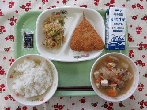 月曜日はあじフライです。その味のよさ(おいしさ)から”あじ”と呼ばれるようになったといわれています。