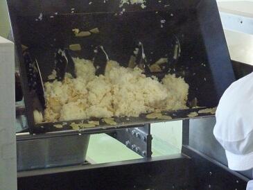 機械で、ほぐします。たけのこご飯は、人気のご飯です。