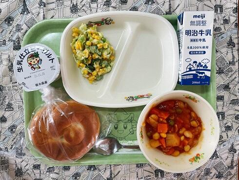 今日の塩谷町産の食材は「大豆、にんじん」、栃木県産の食材は「牛乳、豚肉、ヨーグルト、きゅうり、米粉(米粉パン)」です。今日は12品目中7品目が塩谷町産・栃木県産でした。(調味料を除く)
