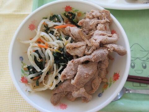 今日の献立は、ビビンバ丼(ごはん・焼き肉・ナムル) わかめスープ 牛乳です。