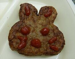 今夜は十五夜のお月様がよく見えそうですね。うさぎのハンバーグには、ケチャップで顔を書いてみました。