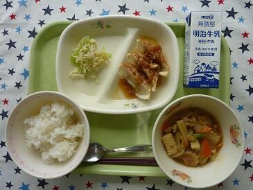 明日は、蒸し焼きぎょうざが出ます。副菜には、もやしときゃべつのボイルしたものが出ます。餃子は、宇都宮が有名ですが、実は静岡県の浜松市も有名です。その浜松市では、餃子を注文すると、ゆでたもやしが一緒についてくるそうです。
