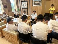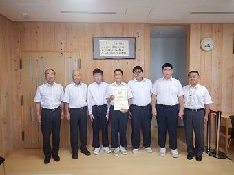 8月1日、相撲部員が町役場に伺い、塩谷町長様、副町長様、教育長様に県大会の結果と関東大会出場について報告を行いました。激励のお言葉を頂戴し、選手たちは関東大会への意気込みを語ってきました。気合が入りました。
