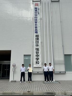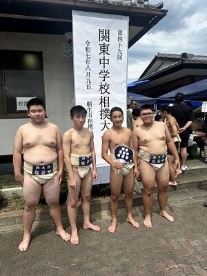 相撲部が8月9日群馬県桐生市の桐生市相撲場で行われた関東大会に出場しました。結果は惜しくも1勝2敗で1回戦敗退でした。負けた試合ももう一押しといった惜しい取り組みでした。4日前、桐生市は国内の歴代最高気温41.2℃を記録した猛暑でしたが、当日も蒸し暑い試合会場でした。相撲部の皆さんア、3年間お疲れ様でした。