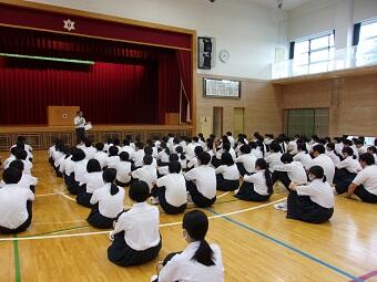 外部から指導者を招聘し、分かりやすく、丁寧に、説明をしてもらいました。男女の体や心の成長、これからの生活で大切にすることなどの話を聞き、大人の階段を上り始めた中学生が素敵な大人に成長するよう願いを込めて、授業が展開されました。講師の先生、ありがとうございました。