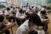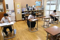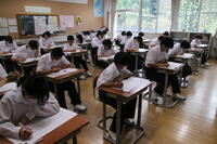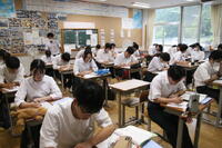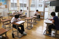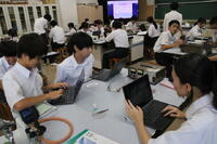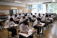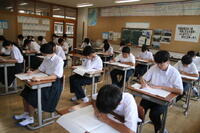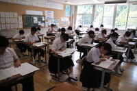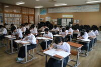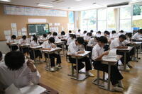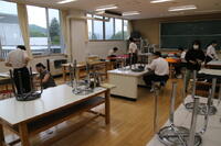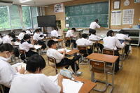 台風接近の影響で朝から雨模様です。生徒は落ち着いて授業に参加しています。