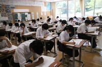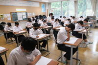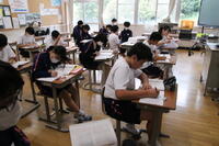 1学期の期末テストが終わり、3校時の授業は教科によって昨日のテストを返却されたり、教科書を進めたり、さらに復習に力を入れたりしていましたが、生徒からは解放感が感じられました。テストで間違えたところはよく確認し、似たような問題をドリルパークでやり直して欲しいと思います。
