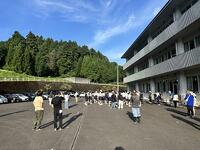 ※夜の11時50分頃に学校に到着し、玄関前で簡単な帰着式を行いました。