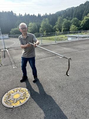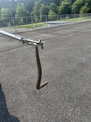 昨夜は9時過ぎに学区内にクマが出没した情報が入ってきましたが、今朝は校舎南の駐車場にマムシがはっているところを出勤した職員が発見し、ヘビが苦手な用務員さんが捕獲しました。自然が近い環境で生活している証拠ですね。事故につながらないよう注意していきたいと思います。