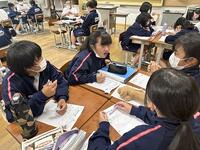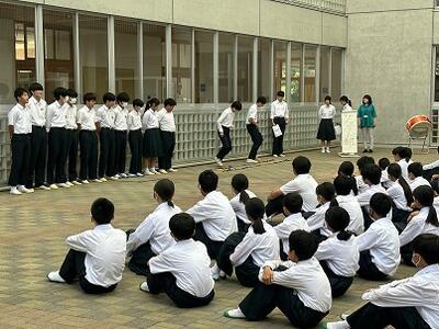 今朝の読書の時間は、図書ボランティアの方々によるブックトークが行われました。各クラスの図書委員が講師の方と読み聞かせをしていただく本を紹介しました。ボランティアの方々は終了後ミーティングを行い、活動を振り返りました。次回も楽しみです。