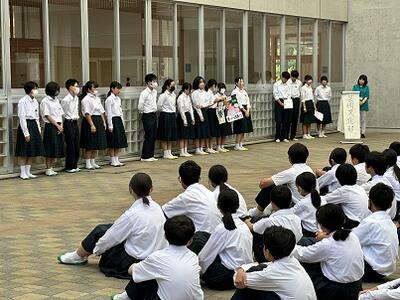金曜日から総合体育大会塩谷地区予選会が始まります。今朝の生徒集会は部活動壮行会でした。各部からの意気込みを発表し、最後は運動会で結成した応援団のエールで締めくくりました。作成を中心としている芸術文化部を含め、最後まであきらめずに悔いを残さずに取り組んでほしいと思います。めざせ地区優勝!めざせ県大会出場!、