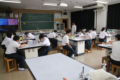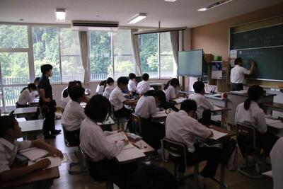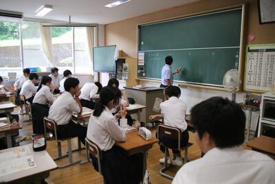 7月に入って暑さが身にしみてきました。生徒はエアコンの効いた教室で集中して授業に取り組んでいます。
