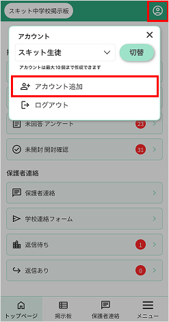 ユーザーを複数アカウント登録した場合は、アカウントを切り替えて確認ができます。