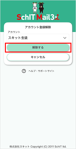 [解除する]を押下して、確認メッセージの[はい]と進むと、アプリのアカウント登録が解除されます。