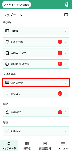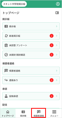 1. トップページの[保護者連絡]を押下します。