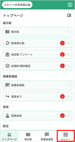 保護者連絡のページを開くには、3つの方法があります。