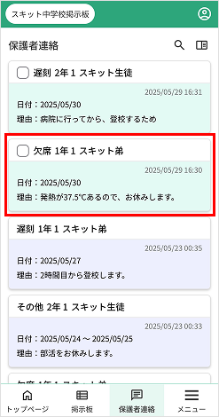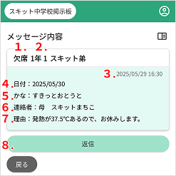 3. 保護者連絡のメッセージ内容が表示されます。