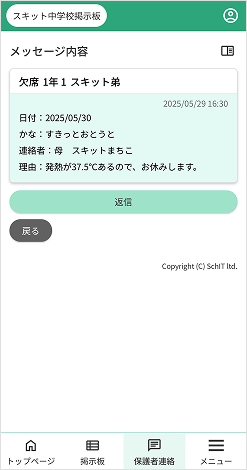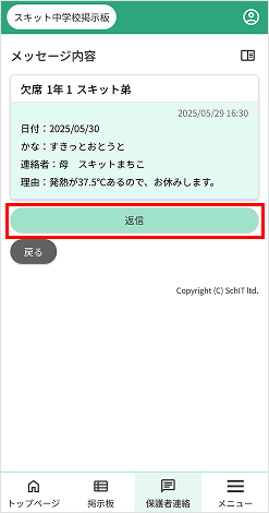 保護者連絡を返信する