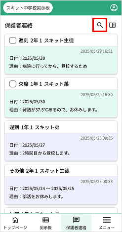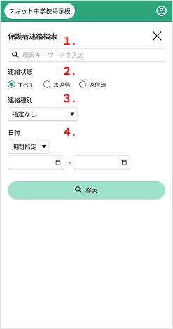 1. 検索アイコン…保護者連絡検索が表示