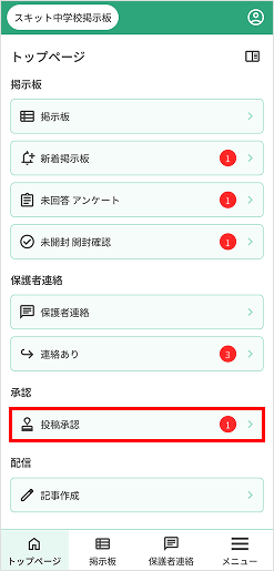 1. トップページの[投稿承認]を押下します。