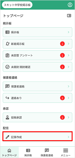 学校管理者の権限または教職員の方は、記事を作成し配信することができます。