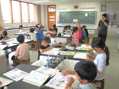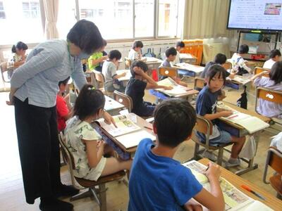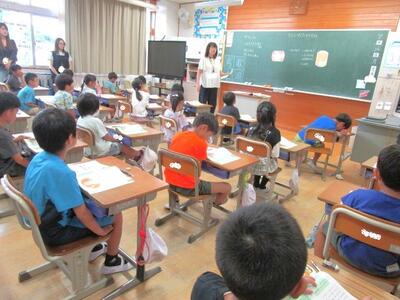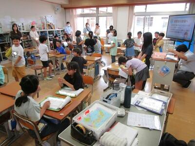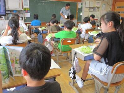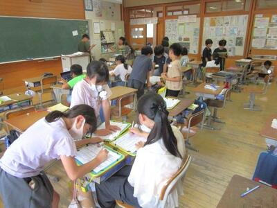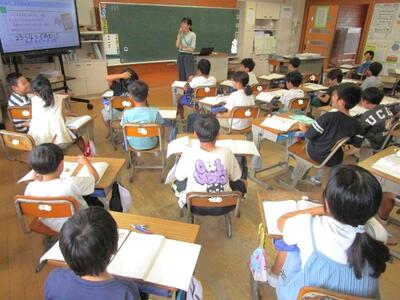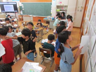 【4年生】1枚目の写真は、理科の時間の様子です。黒板には「自由研究の進め方」と書いてあります。もうすぐ夏休みですから、自由研究のやり方を学習しました。