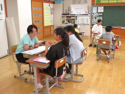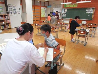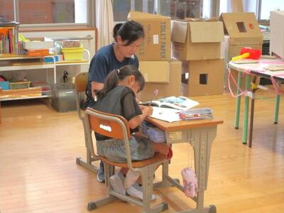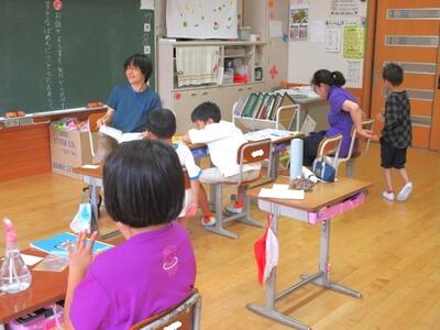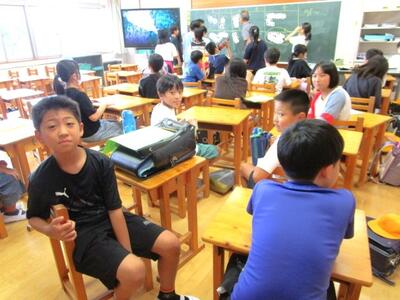 夏休みが終わり、今日から1学期の後半が始まりました。夏休み後の初めての登校となった今日は、夏休みの宿題を集めたり、夏休み中の思い出を発表しあったり、久しぶりに会った友達とおしゃべをしたりと、様々な活動を行っていました。