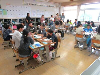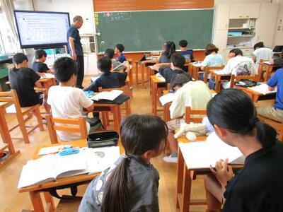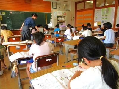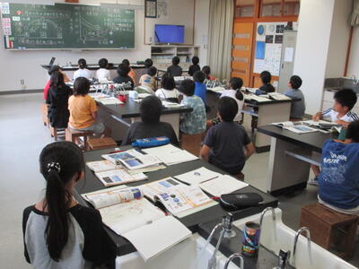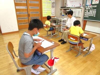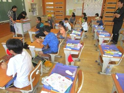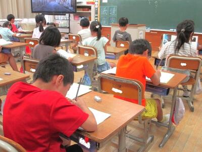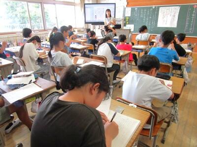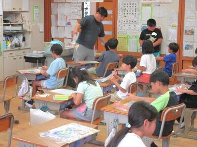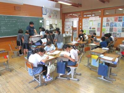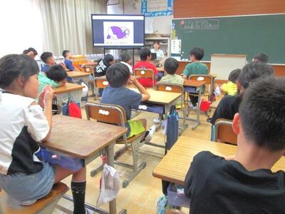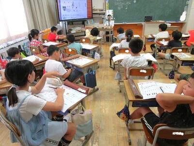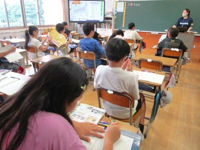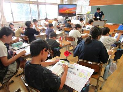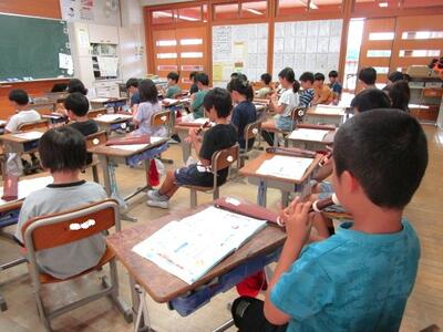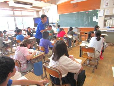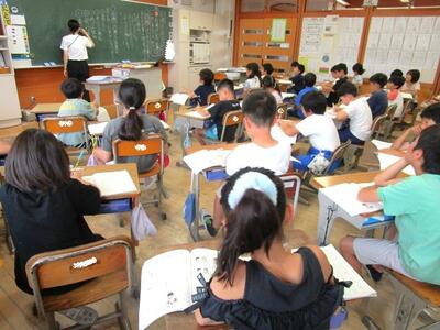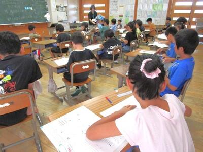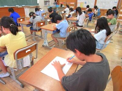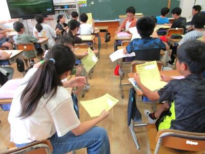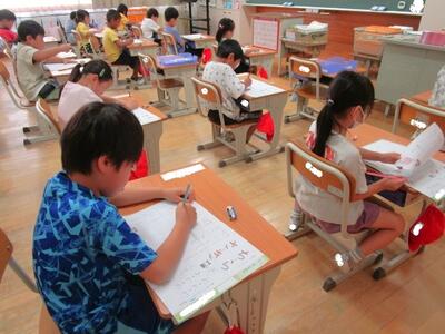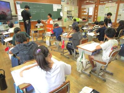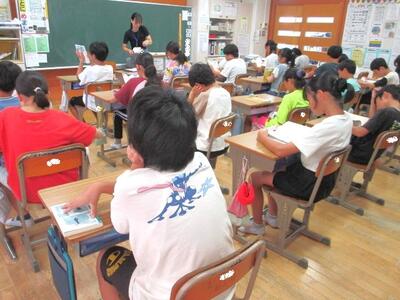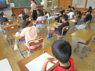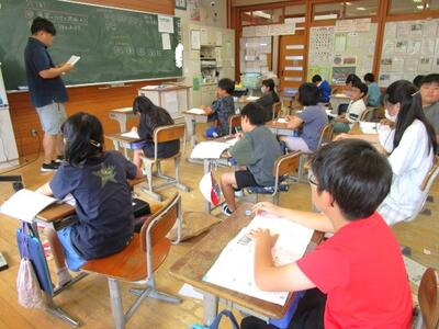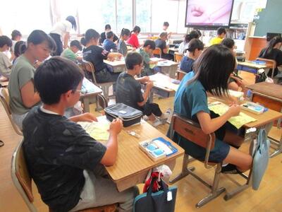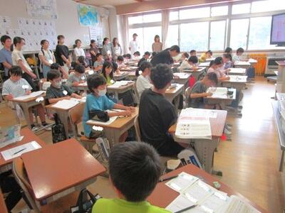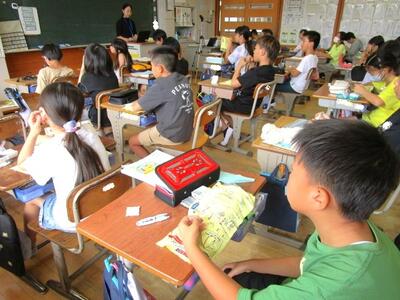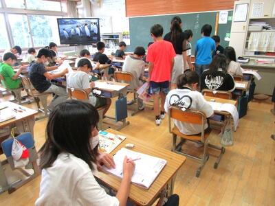いよいよ明日から39日間の夏休みです。夏休みの前の日の今日は、夏休み前の集会(校長先生の話)や各クラスでの学級活動などを行いました。