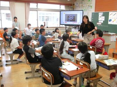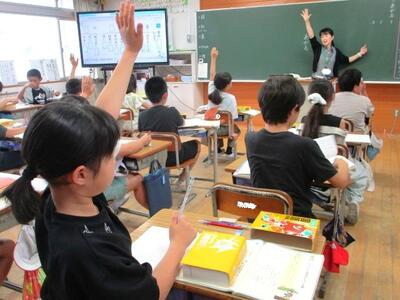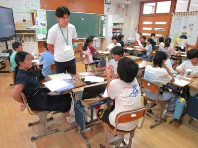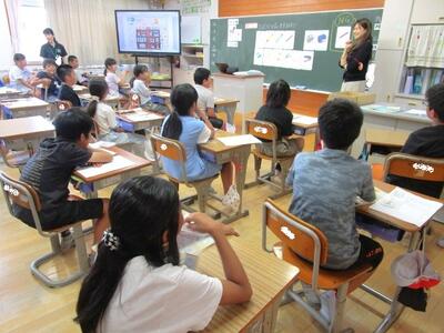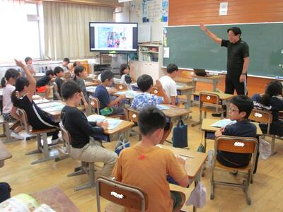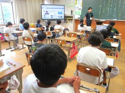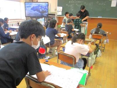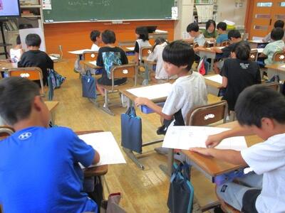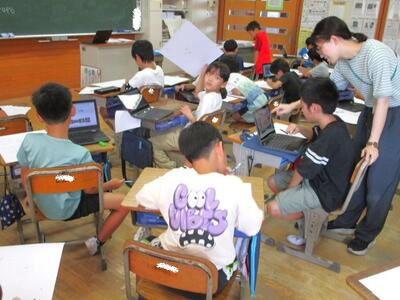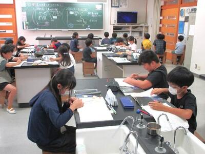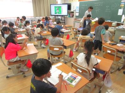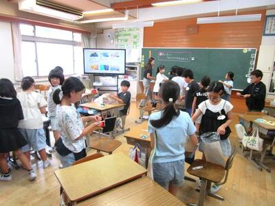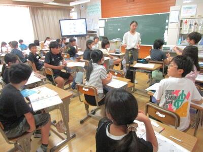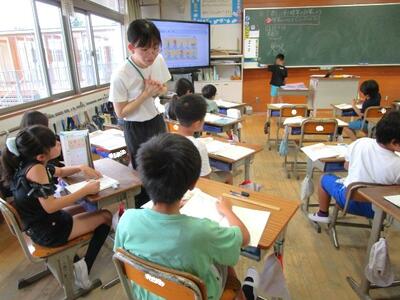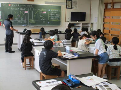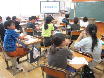 【4年生】1枚目の写真は、理科の「夏の夜空」の学習の様子です。今日は、夏の大三角についての学習をしました。実際の星空で発見できるといいですね。
