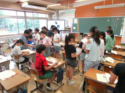 いよいよ明日から夏休みです。今日の朝は、夏休み前の集会として、校長先生の話を聞きました。校長先生の話の後は、各学級でそれぞれ学級活動を行いました。