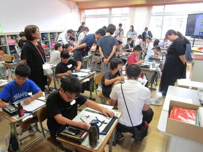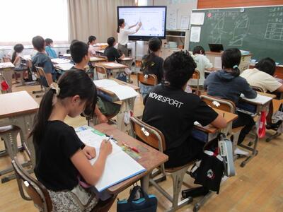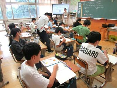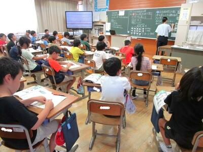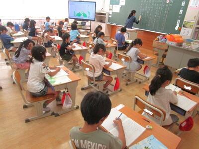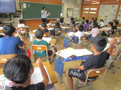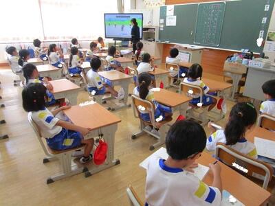 【2年生】1枚目の写真を見ると先生がたくさんいますね。実は、インフルエンザ蔓延防止のための休業の時に行う予定だった研究授業を行っています。子どもたちも真剣に学んでいますね。
