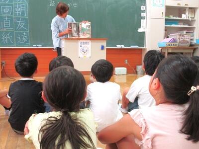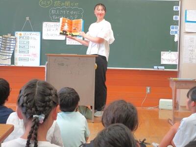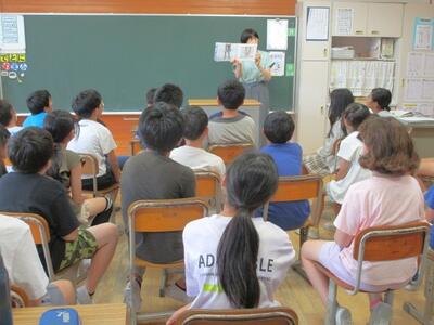 今日の阿小タイム(朝の活動)に、5・6年生を対象に「読み聞かせ」を実施しました。子どもたちは、しっかり本の世界に浸っていました。