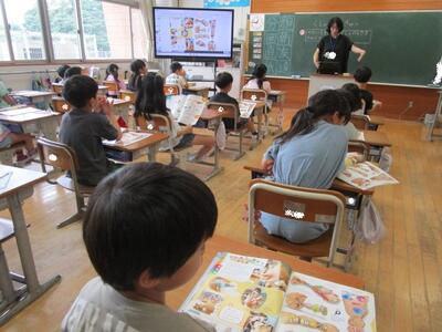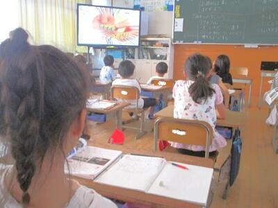 【1年生】1枚目と2枚目の写真は、国語の「大きなかぶ」の学習の様子です。1年生にとっては、少し長めの物語ですが、挿絵を見ながら登場人物の気持ちを考えています。