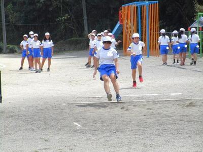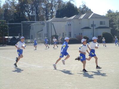 【4年生】1枚目の写真は、体育の「体の動きを高める運動」の学習の様子です。昔の持久走です。ただし今は、3分程度を自分でペース配分をしながら走るという内容です。