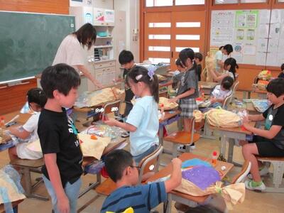 【3年生】1枚目の写真は、図画工作の「空きようきのへんしん」の学習の様子です。ペットボトルの容器に紙粘土を貼って、素敵な作品に仕上げていきます。どんな作品が出来上がるか楽しみですね。