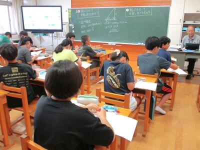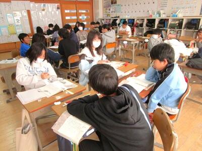 【3年生】1枚目の写真は、テスト前の様子を撮影したものです。あまりに良い姿勢でテストを配られるのを待っているので、驚きでした。よい学習習慣が身についています。