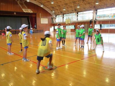 【6年生】1枚目の写真は、体育の「バスケットボール」の活動の様子です。5年生で行った以来なので、まずはボールに慣れたり、ルールを思い出したりすることから始めました。