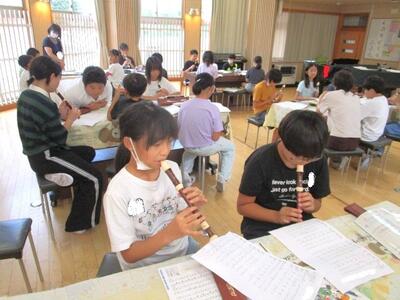 【3年生】1枚目の写真は、音楽の学習の様子です。3年生になってから始めたリコーダーですが、指の押さえ方やタンギングに慣れて、きれいな音をだして練習していました。