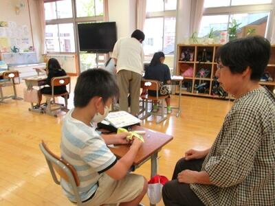 【2年生】1枚目の写真は、生活科の「うごく うごく わたしの おもちゃ」の学習の様子です。今日は、グループごとに分かれて、動くおもちゃづくりを行いました。