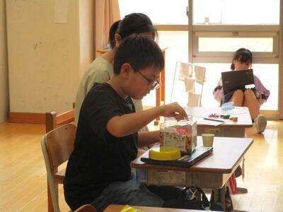 【5年生】1枚目の写真は、図画工作の「のぞいてみると」の学習の様子です。箱の中をのぞいてみると、どんな世界が広がっているのでしょうか。子どもたちは、箱の中の世界づくりに夢中になっていました。
