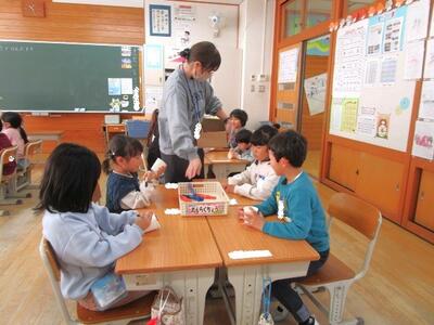 【1年生】1枚目の写真は、国語の「おむすびころりん」の学習の様子です。1年生にとっては、少し長い昔話です。「おおきなかぶ」の学習を思い出しながら、音読発表会につなげていきます。