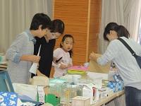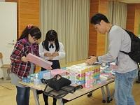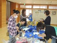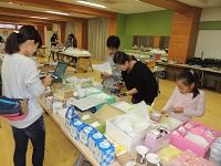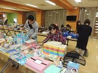 事業部と担当教職員が、バザーの最終準備をしています。値段付けです。ありがとうございます。安くてよい品物が多数あります。バザー開始時刻は、13時からです。