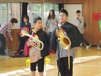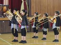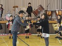 金管バンド部の演奏に先立ち、11月に二つの全国大会に出場するに当たって、PTA児童活動後援基金からお祝いが、PTA会長から保護者会長に手渡されました。全国大会でも頑張ってください。