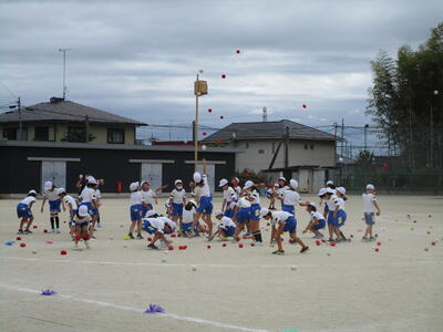 低学年は、音楽に合わせてかわいらしいダンスをしながらの玉入れ、中・高学年は真剣勝負での玉入れとなります。
